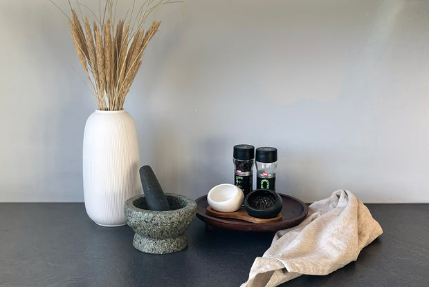 Samle tingene dine, ikke spre dem utover. Sett dem gjerne på et fat eller en fjøl, så får de et sted å bo og det er lettere å sette tingene på plass etter bruk.
