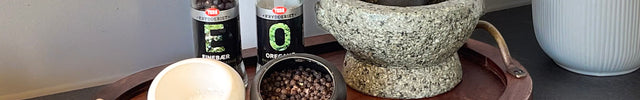 Hvor mye trenger du på benken? Velg ut de redskapene du bruker mest, og organiser dem i beholdere. Resten ryddes ned i skuffen. Samme gjelder oljer og krydder, rydd bort dem du ikke bruker så ofte.