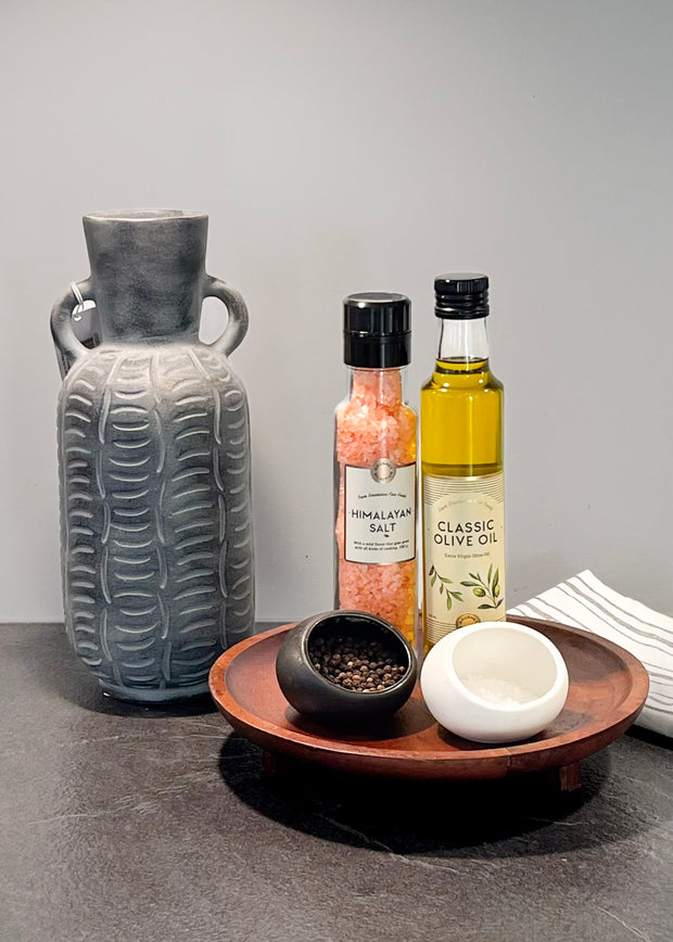 Pynt gjerne med store boller, eller vaser. Det kan være fint med noen store blikkfang innimellom. Fyll med frukt, blomster, strå, grener eller annet.