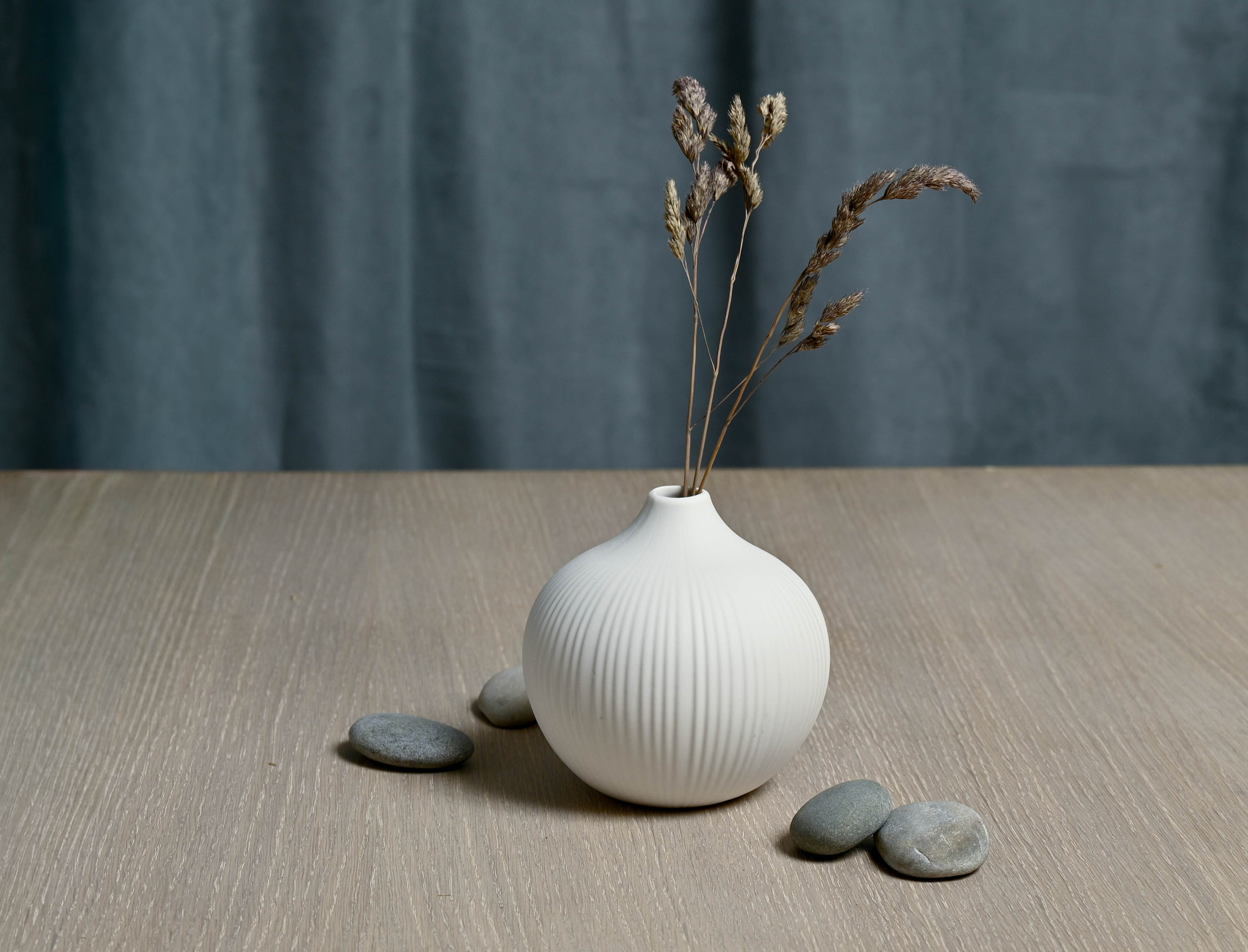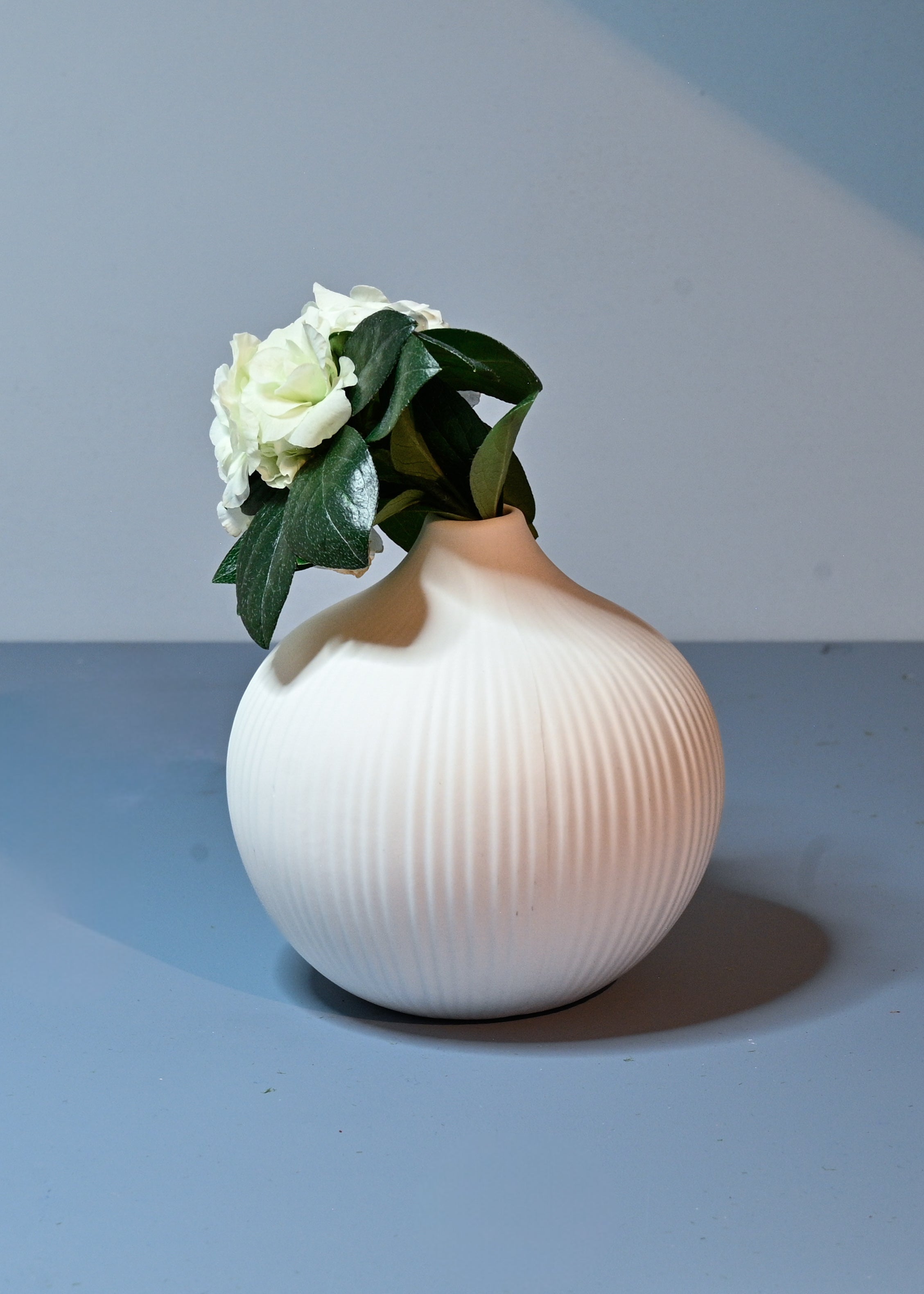 Stilren hvit vase i matt keramikk. Denne kan brukes hele året og passer til alle anledninger. Like fin til sommerblomster som en kvist på høsten.