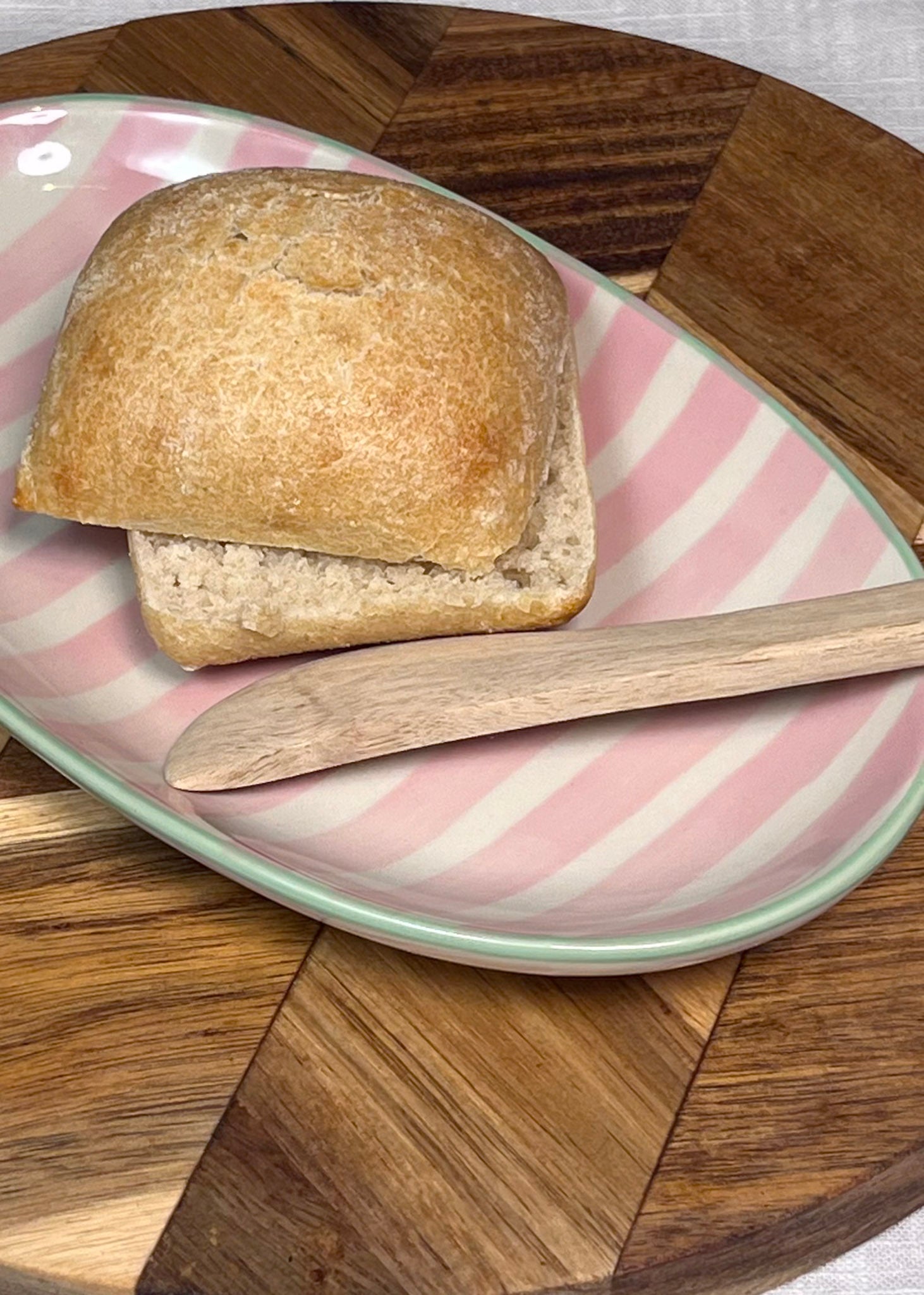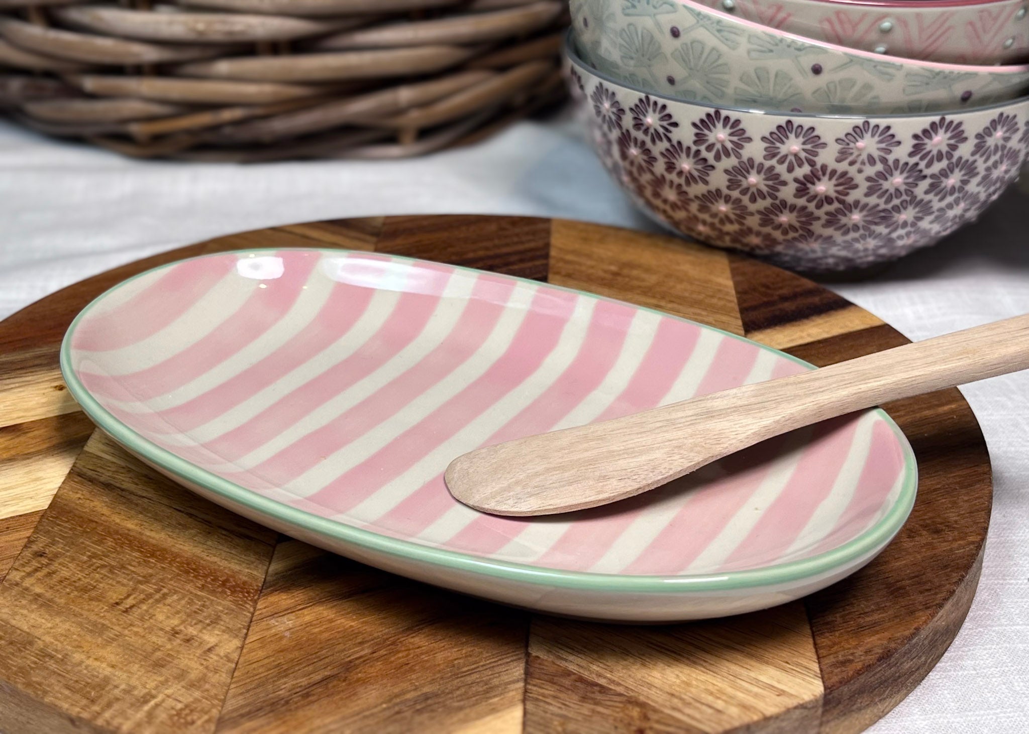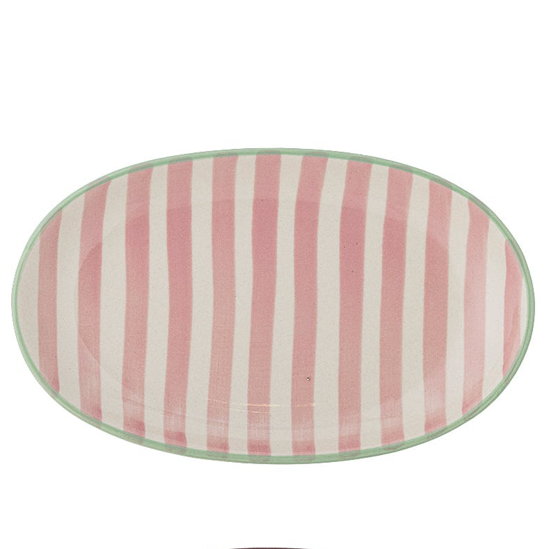 Patrizia tallerken i serien Originals fra Bloomingville. Kan også brukes som lite fat. Rosa, stripete mønster.