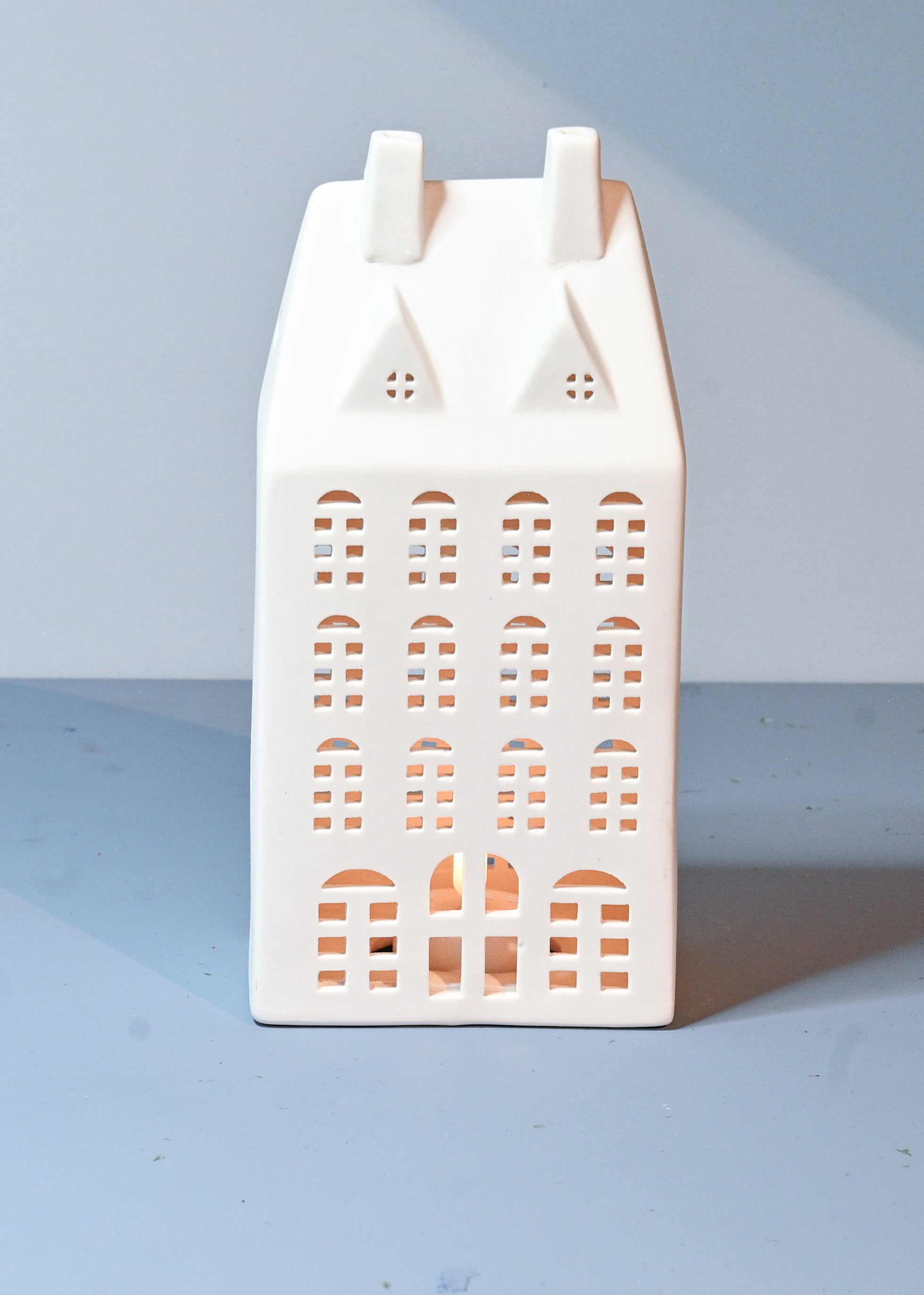 Lekkert lyshus i matt keramikk. Stemningsfull og hyggelig dekor. Huset er håndlaget, slik at det kan forekomme små prikker eller groper i keramikken.