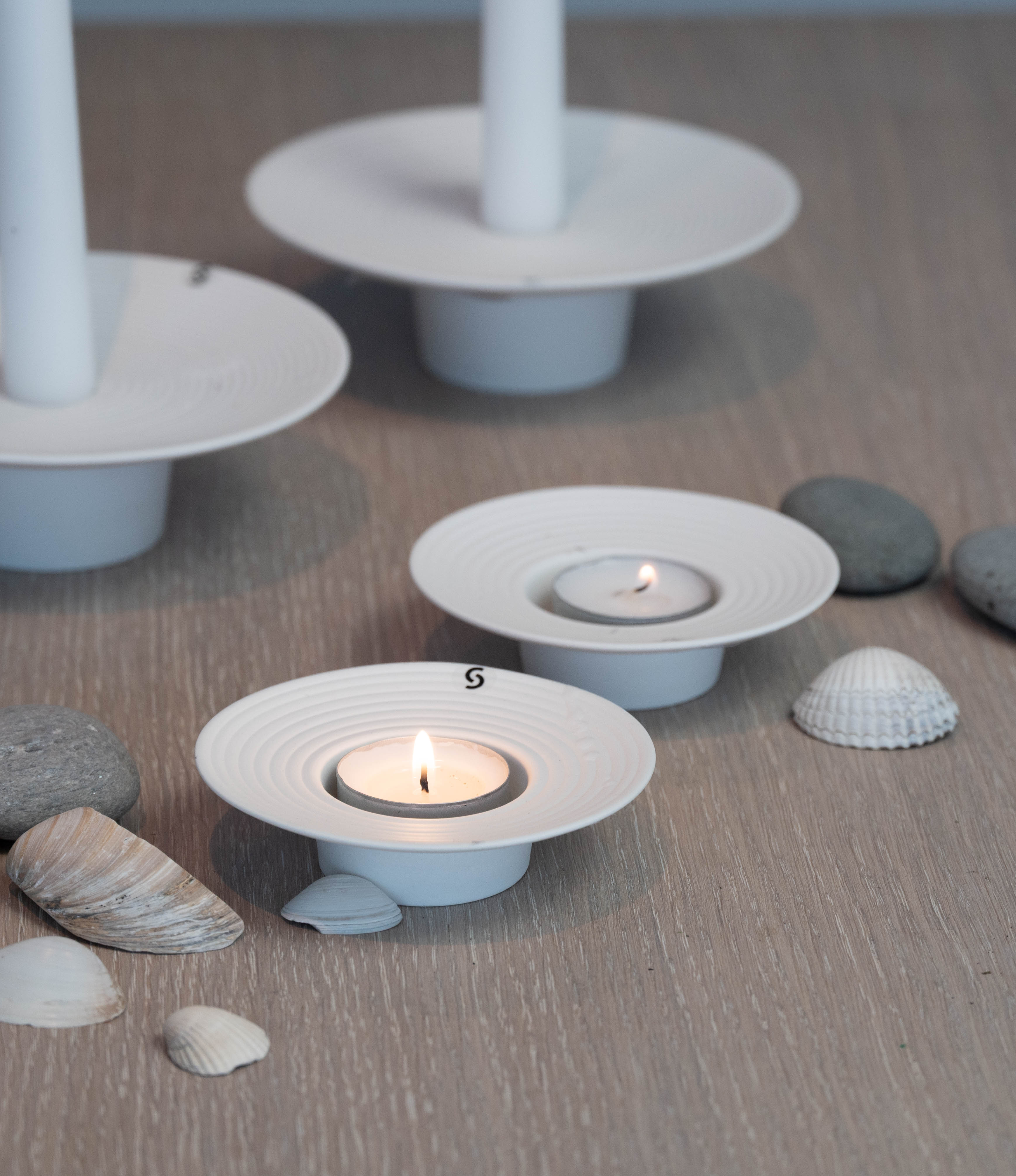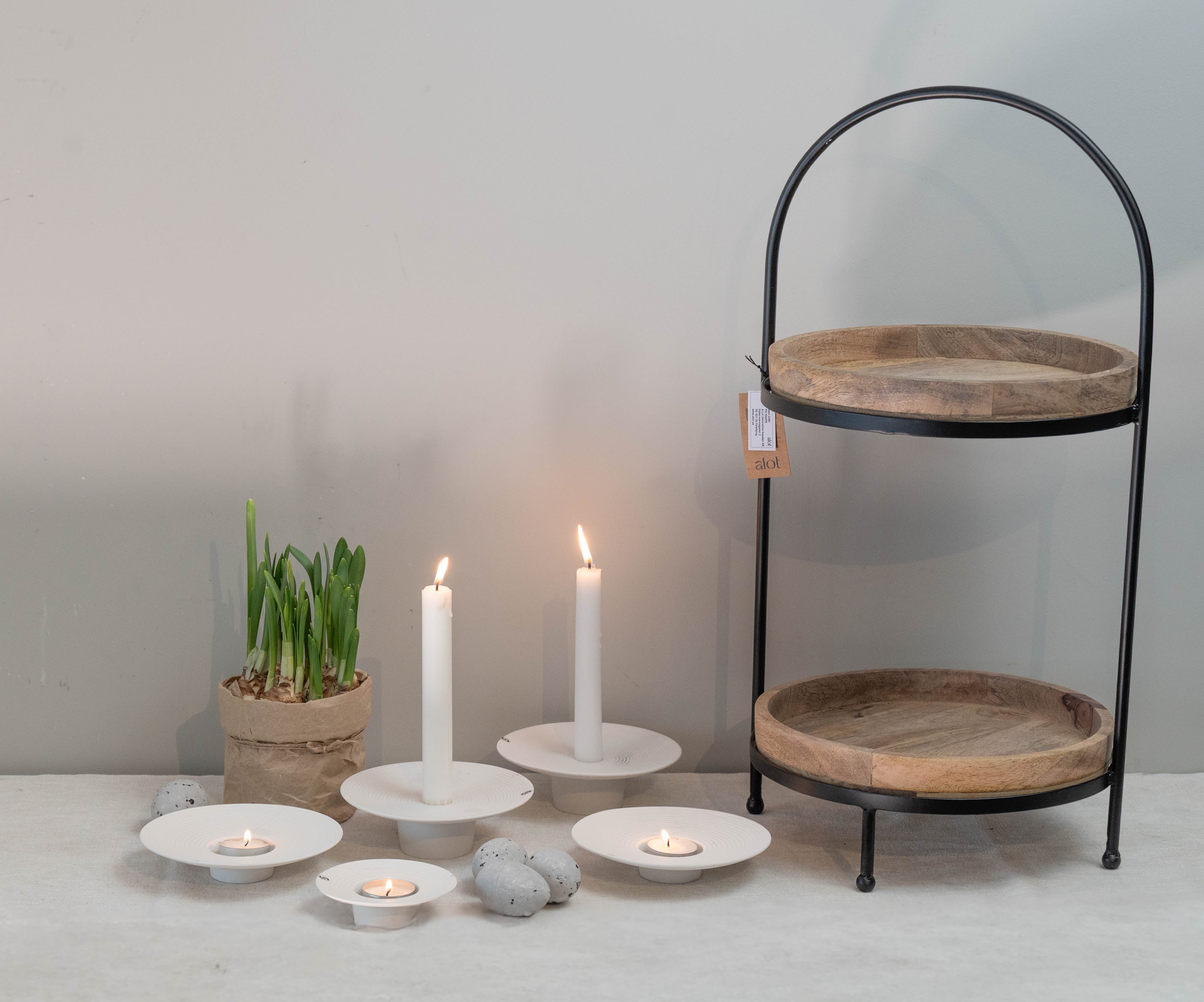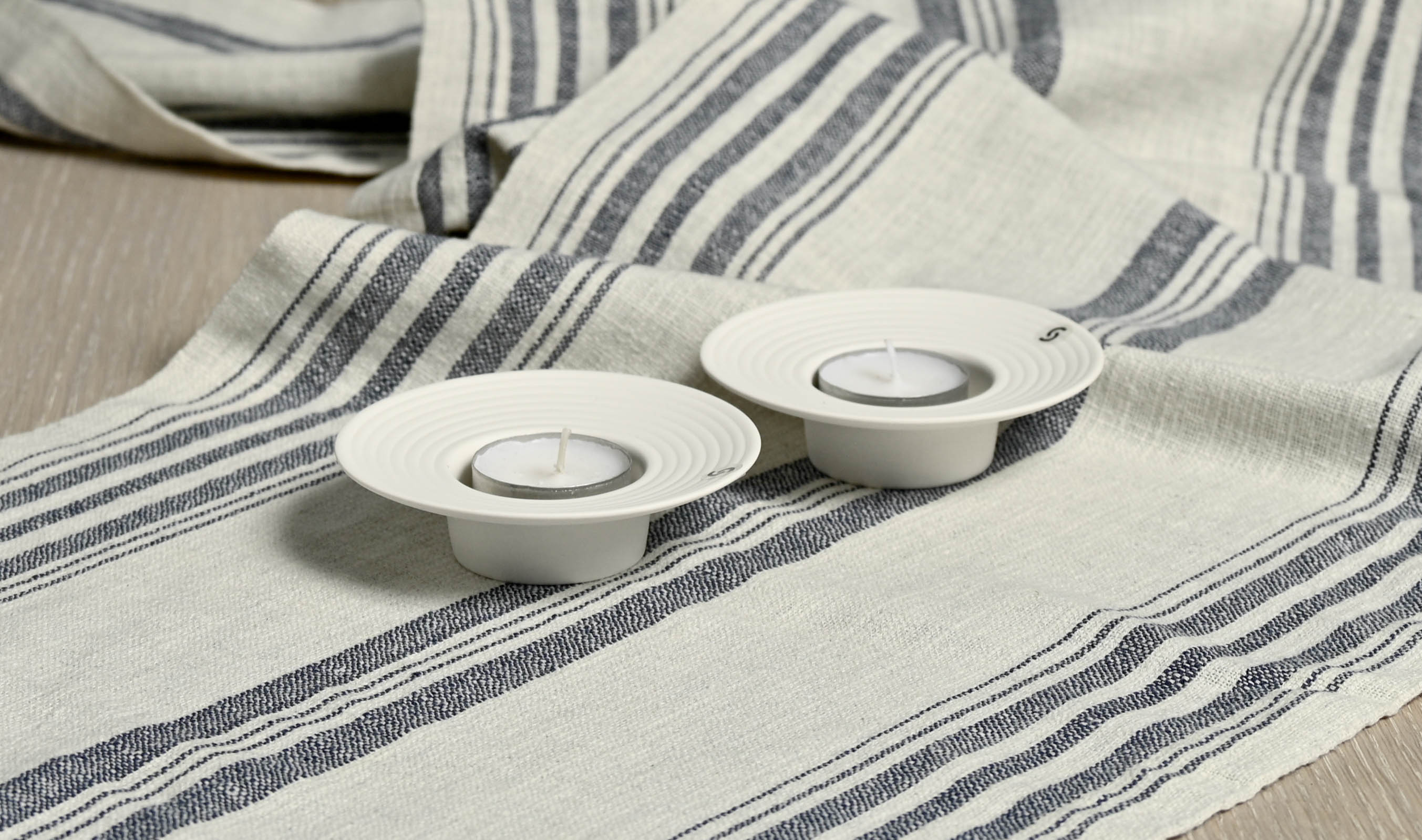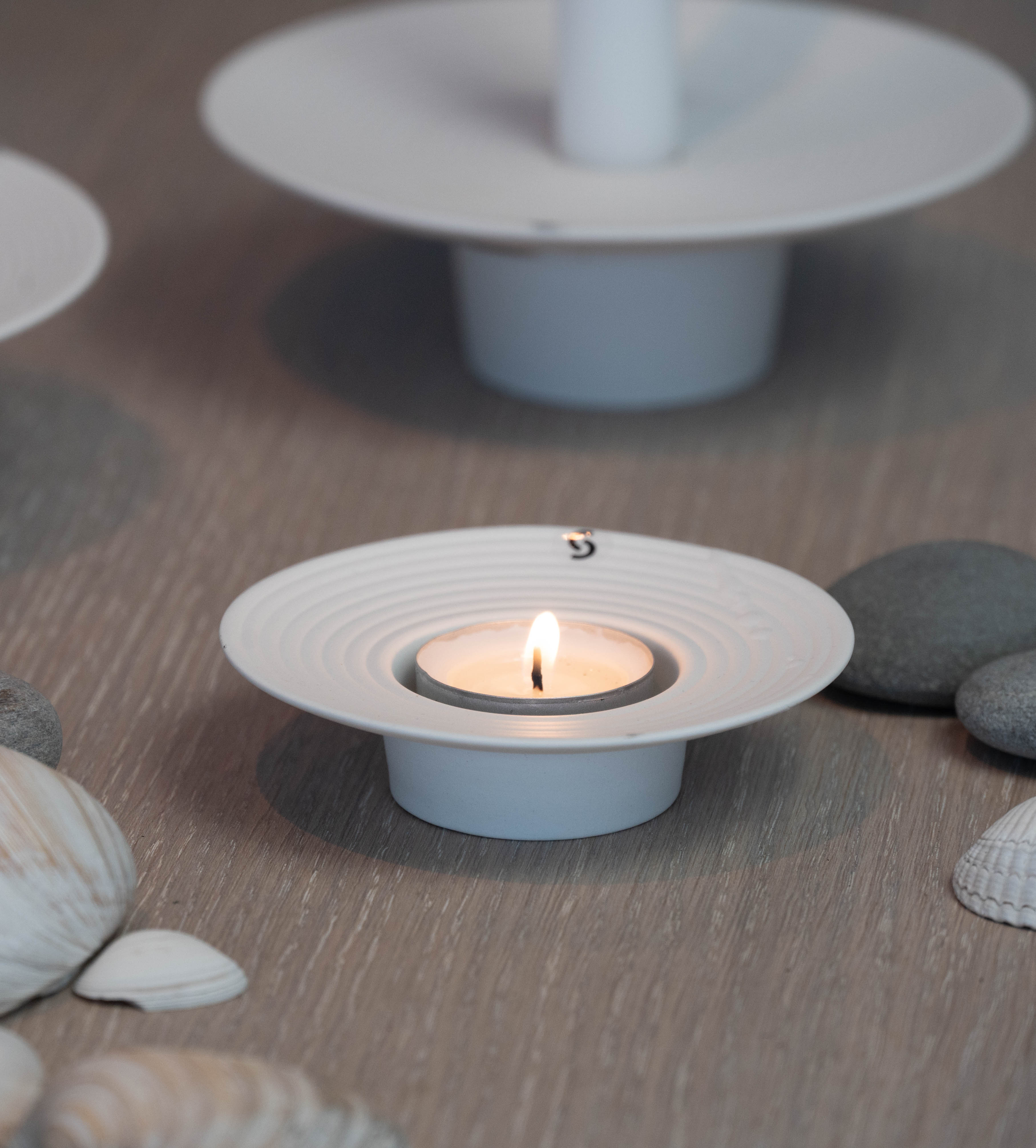 Tveta lysestake for telys i kvit keramikk, liten